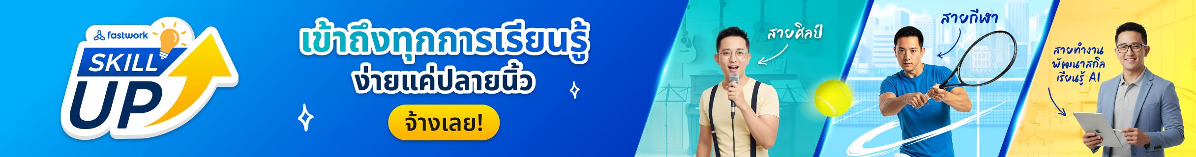 อยากเพิ่มสกิลภาษา คณิต หรือสายอาชีพ ก็เริ่มได้ทันที Fastwork รวมติวเตอร์ไว้ครบทุกสาย เพราะการเรียนรู้… ไม่เคยสายเกินไปสำหรับใครเลย