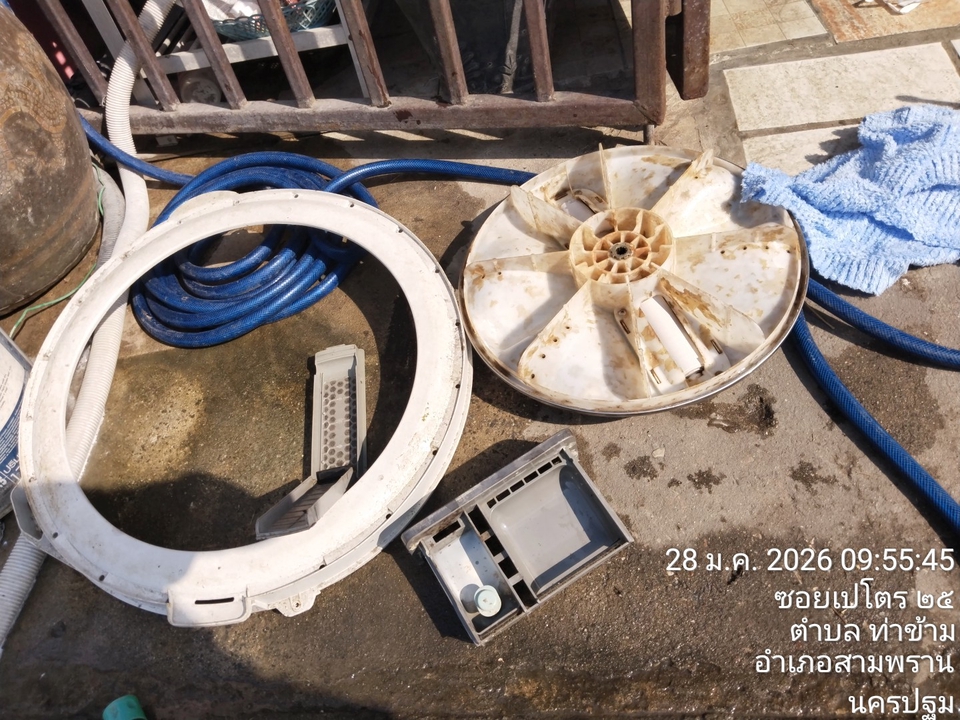 ล้างเครื่องซักผ้าฝาบน นครปฐม — ถอดถังซักล้างคราบสกปรกฝังลึก