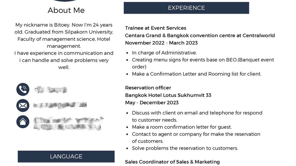 Hello, my name is Ms. Manita Srikampha. I graduated with Second-Class Honors from Silpakorn University, Faculty of Management Science. I have extensive experience in daily communication with international clients, which has enhanced my language proficiency and cultural understanding. I am now offering freelance translation services, focusing on accurate and high-quality translations.