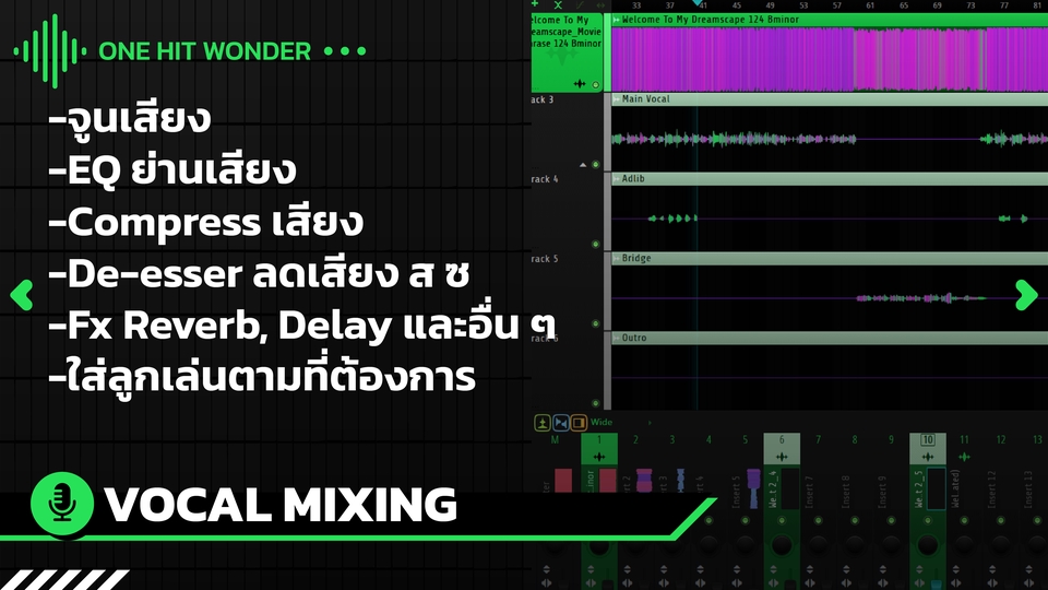 รับ Mix&Master เพลง Mix เสียงร้อง ใส่ fx ใส่ลูกเล่นได้ตามต้องการ By ONE HIT WONDER