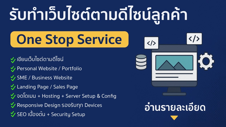 คำอธิบายงาน (Description) 🚀 บริการ เขียนเว็บไซต์ตามดีไซน์ลูกค้า สำหรับบุคคลทั่วไปและธุรกิจ SME ไม่ว่าคุณจะมีไฟล์ดีไซน์ (Figma, PSD, AI) หรือ Sketch ของตัวเอง ผมสามารถเปลี่ยนเป็นเว็บไซต์ ทำงานได้จริง พร้อมติดตั้งระบบหลังบ้านและดูแล Hosting / Server บริการของเรา ✅ รับเขียนเว็บไซต์ตามดีไซน์ที่ลูกค้าออกแบบมาแล้ว ✅ Personal Website / Portfolio ✅ SME / Business Website ✅ Landing Page / Sales Page ✅ จดโดเมน + Hosting + Server Setup & Config ✅ Responsive Design รองรับมือถือทุกขนาด ✅ SEO เบื้องต้น + Security Setup ทำไมต้องเลือกเรา? จบครบทุกขั้นตอนในที่เดียว ปรึกษาเรื่องเทคนิคได้แม้ลูกค้ามีดีไซน์เอง Support หลังส่งงาน พร้อมสอนวิธีใช้งาน