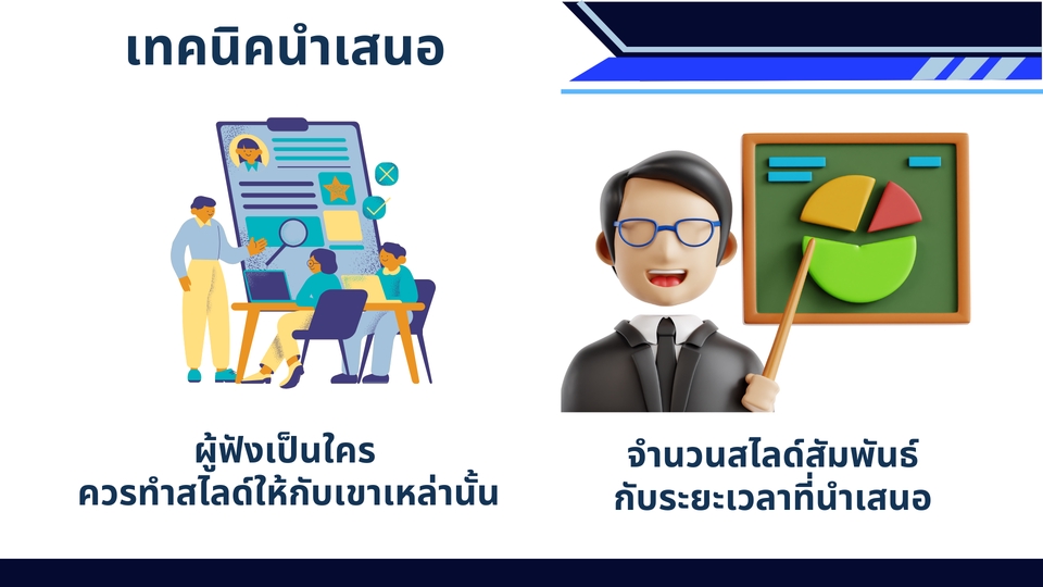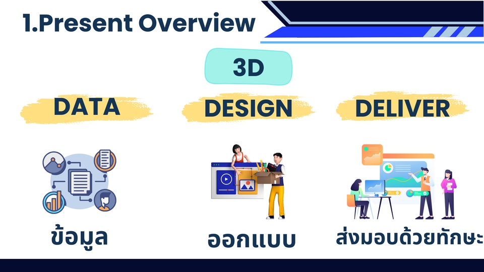 Executive Pack 1,300 บาท เหมาะสำหรับ: งานเสนอผู้บริหาร รายงานประจำปี แผนยุทธศาสตร์ สิ่งที่ได้รับ: - ออกแบบ 20 สไลด์ - ปรับแต่งธีม / อินโฟกราฟิก / ปก & Thank you slide - แก้ไขได้ 4 ครั้ง - ส่งครบทุกฟอร์แมต พร้อมพรีเซนต์