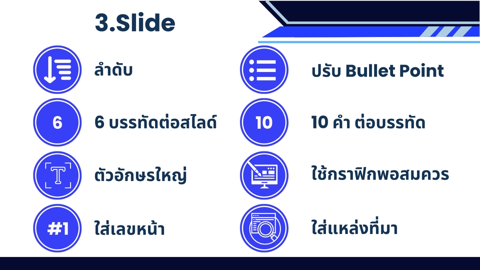 Professional Pack 900 บาท เหมาะสำหรับ: งานนำเสนออย่างเป็นทางการ, อบรม, รายงานเชิงวิเคราะห์ สิ่งที่ได้รับ: -ออกแบบ 10–15 สไลด์ -คุมโทน / มีธีมทั้งชุด -แก้ไขได้ 2 ครั้ง -ส่งไฟล์ PDF, Canva Link