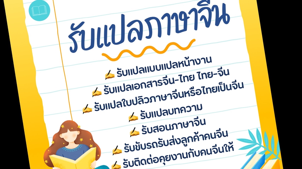 เรียนจบสาขาภาษาจีนธุรกิจ -รับแปลภาษาจีน -รับงานเกี่ยวกับภาษาจีน -รับงานเกี่ยวกับพาคนจีนหรือหารถหาที่พักให้คนจีนได้ ชอบวาดรูปการ์ตูน ชอบงานออกแบบ ออกแบบเสื้อ ออกแบบโลโก้ ตัดต่อรูปภาพ รับพิมพ์งาน รับคีย์ข้อมูล รับพิมพ์รายงาน รับแปลเอกสาร ล่าม-ไกด์ พาร์ทไทม์ (ภาษาไทย-จีน)