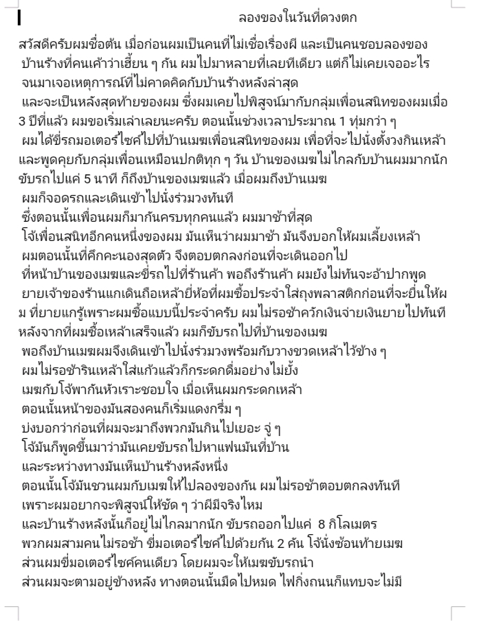 ได้รับเรื่องสั้นผี ในไฟล์ word หรือ pdf ลูกค้าสามารถขอได้ทั้งสองแบบ หรือ อย่างใดอย่างหนึ่ง แล้วแต่ลูกค้าเลือกเลย สามารถบรีฟงานได้ แก้ไขได้ เรื่องสั้นอยากได้สไตล์ไหน สามารถบอกมาได้หมด เช่น อยากได้ผีพรายแต่ก็สมจริง ประมาณแบบนี้ค่ะ