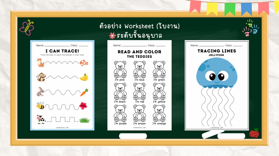 - • ไฟล์ใบงานคุณภาพสูง (PDF/PNG/JPG) และไฟล์เฉลย