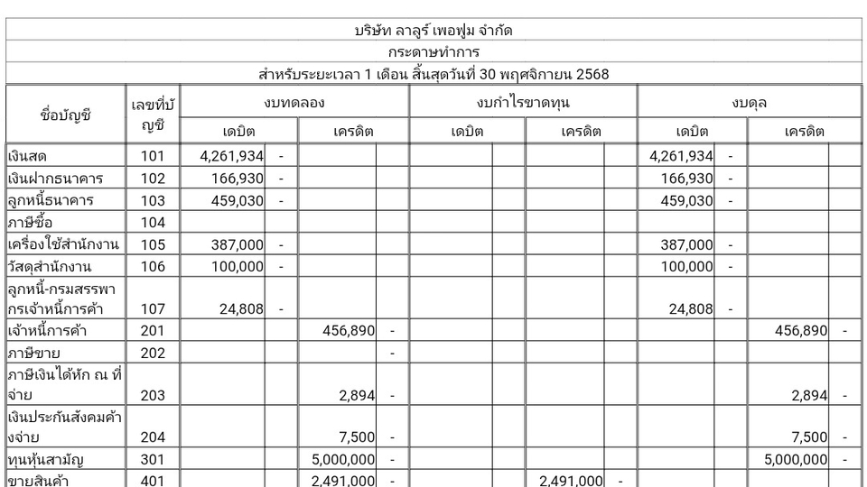 รับจ้างทำบัญชี กระดาษทำการ สมุดรายวัน แยกประเภท งบกำไรขาดทุน งบแสดงฐานะการเงิน