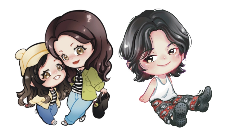 งานออกแบบตัวการ์ตูน Chibi ที่ดึงเอกลักษณ์เฉพาะตัวของศิลปิน/ตัวละครที่ชื่นชอบออกมาให้น่ารักและดูมีชีวิตชีวา 💓✨สามารถจัดวางคิดท่าทาง ปรับแต่งให้ออกมาได้น่ารักที่สุดเพิ่มเติมจากรายละเอียดที่ลูกค้าแจ้ง (หากต้องการ)🙋🏻♀️ ขั้นตอนการทำงาน 1. รับภาพต้นฉบับ brief งานให้เข้าใจตรงกันกับลูกค้าทั้งสองฝ่าย 2. ร่างภาพ กำหนดท่าทาง ส่งให้ลูกค้าเช็ค + แก้ไขตามที่ต้องการ (จะไม่มีการแก้สำหรับท่าทาง หรือขนาดตัวหลังจากขั้นตอนนี้) 3. ลงสี กำหนดแสงเงาให้เรียบร้อย 4. เก็บรายละเอียดที่เหลือ เพิ่มแสงเงารอบสุดท้าย 5. ส่งให้ลูกค้าตรวจทานและแก้ไขสีตามที่ลูกค้าเห็นชอบ 6. ส่งไฟล์งานให้ลูกค้า😻