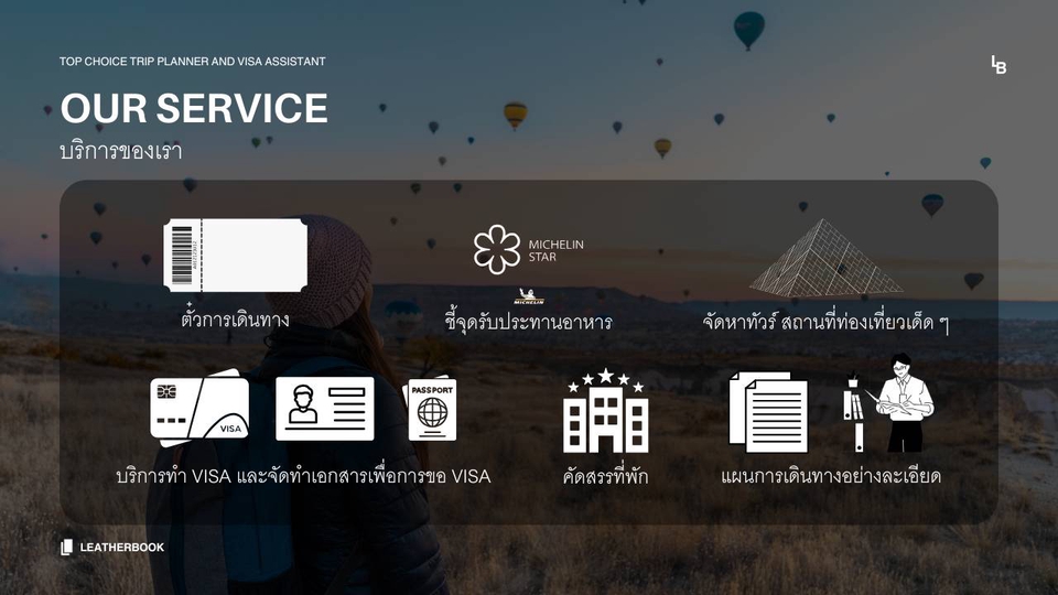 - • ดูแลการจองโรงแรม จองตั๋วเครื่องบิน ทำประกัน