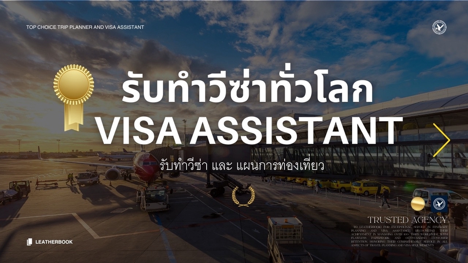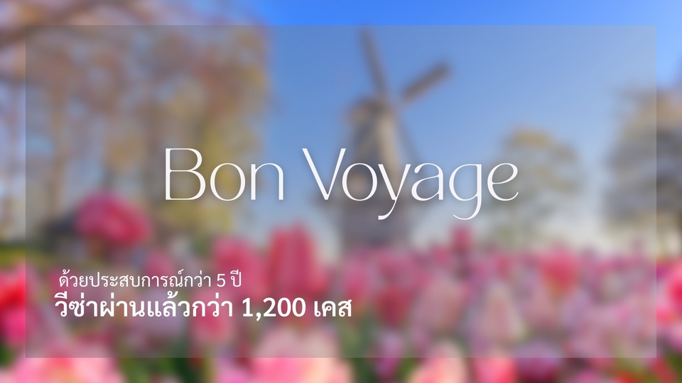 เปิดประสบการณ์บริการยื่นวีซ่า รับทำวีซ่า แบบครบวงจร รับจบครบที่เดียวด้วยการวางแผนการเดินทาง แปลเอกสารราชการ แปลเอกสารวีซ่า พร้อมพายื่นแม้ไม่มีเวลาเตรียมเอกสารก็รับวีซ่าได้อย่างไร้กังวล กับประสบการณ์ท่องเที่ยว ยื่นวีซ่า และอาศัยอยู่ต่างประเทศกว่า 5 ปี เราพร้อมที่จะให้คำปรึกษาเบื้องต้นฟรี และยินดีช่วยเหลือในทุกขั้นตอน 🎫 วีซ่าท่องเที่ยว | วีซ่านักเรียน | วีซ่าธุรกิจ | วีซ่าทำงาน | วีซ่าแต่งงาน | วีซ่าระยะยาว เราพรัอมใหับริการ! 🗺️ ครอบคลุมทุกมุมโลก รับทำวีซ่าเชงเก้น Schengen Visa วีซ่าอเมริกา USA วีซ่าอังกฤษ วีซ่ายุโรป วีซ่าออสเตรเลีย วีซ่านิวซีแลนด์ วีซ่าแคนาดา วีซ่าเกาหลี K-eta 🇹🇭วีซ่า Non-B วีซ่า Non-O และ Work Permit บริการรับยื่นวีซ่า - ครบเครื่องเรื่องเดินทาง 🛃 รับทำวีซ่า กรอกแบบฟอร์ม ยื่นวีซ่าแทน เขียนจดหมาย นัดหมายเวลา แปลเอกสารประกอบการยื่น Visa 🛣️ รับวางแผนการเดินทาง โปรแกรมเที่ยวประกอบวีซ่า ✈️ บริการจองตั๋วเครื่องบิน จองที่พัก Airbnb ⛑️ ประกันการเดินทาง เรารับแปลทุกเอกสาร พร้อมรับรอง 📌 รับแปลสูติบัตร รับแปลบัตรประชาชน รับแปลทะเบียนสมรส รับแปลโฉนดที่ดิน รับแปลหนังสือรับรองการจดทะเบียนบริษัทและห้างหุ้นส่วนจำกัด รับแปลทะเบียนการค้า รับแปลสำเนาทะเบียนบ้าน รับแปลทรานสคริปต์ รับแปลใบขับขี่ รับแปลหนังสือเปลี่ยนชื่อ-สกุล รับแปลทะเบียนรถ ขั้นตอนการทำงาน 1. ลูกค้าบรีฟรายละเอียดประเภทวีซ่า 2. จัดทำวีซ่า และจองรอบตามลูกค้าประสงค์
