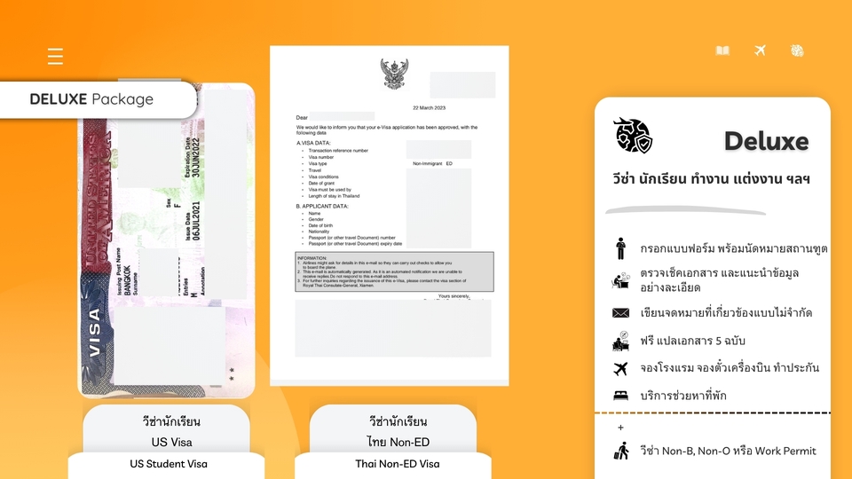 เปิดประสบการณ์บริการยื่นวีซ่า รับทำวีซ่า แบบครบวงจร รับจบครบที่เดียวด้วยการวางแผนการเดินทาง แปลเอกสารราชการ แปลเอกสารวีซ่า พร้อมพายื่นแม้ไม่มีเวลาเตรียมเอกสารก็รับวีซ่าได้อย่างไร้กังวล กับประสบการณ์ท่องเที่ยว ยื่นวีซ่า และอาศัยอยู่ต่างประเทศกว่า 5 ปี เราพร้อมที่จะให้คำปรึกษาเบื้องต้นฟรี และยินดีช่วยเหลือในทุกขั้นตอน 🎫 วีซ่าท่องเที่ยว | วีซ่านักเรียน | วีซ่าธุรกิจ | วีซ่าทำงาน | วีซ่าแต่งงาน | วีซ่าระยะยาว เราพรัอมใหับริการ! 🗺️ ครอบคลุมทุกมุมโลก รับทำวีซ่าเชงเก้น Schengen Visa วีซ่าอเมริกา วีซ่าอังกฤษ วีซ่ายุโรป วีซ่าออสเตรเลีย วีซ่านิวซีแลนด์ วีซ่าแคนาดา วีซ่าเกาหลี K-eta 🇹🇭วีซ่า Non-B วีซ่า Non-O และ Work Permit บริการรับยื่นวีซ่า - ครบเครื่องเรื่องเดินทาง 🛃 รับทำวีซ่า กรอกแบบฟอร์ม ยื่นวีซ่าแทน เขียนจดหมาย นัดหมายเวลา แปลเอกสารประกอบการยื่น Visa 🛣️ รับวางแผนการเดินทาง โปรแกรมเที่ยวประกอบวีซ่า ✈️ บริการจองตั๋วเครื่องบิน จองที่พัก Airbnb ⛑️ ประกันการเดินทาง เรารับแปลทุกเอกสาร พร้อมรับรอง 📌 รับแปลสูติบัตร รับแปลบัตรประชาชน รับแปลทะเบียนสมรส รับแปลโฉนดที่ดิน รับแปลหนังสือรับรองการจดทะเบียนบริษัทและห้างหุ้นส่วนจำกัด รับแปลทะเบียนการค้า รับแปลสำเนาทะเบียนบ้าน รับแปลทรานสคริปต์ รับแปลใบขับขี่ รับแปลหนังสือเปลี่ยนชื่อ-สกุล รับแปลทะเบียนรถ ขั้นตอนการทำงาน 1. ลูกค้าบรีฟรายละเอียดประเภทวีซ่า 2. จัดทำวีซ่า และจองรอบตามลูกค้าประสงค์