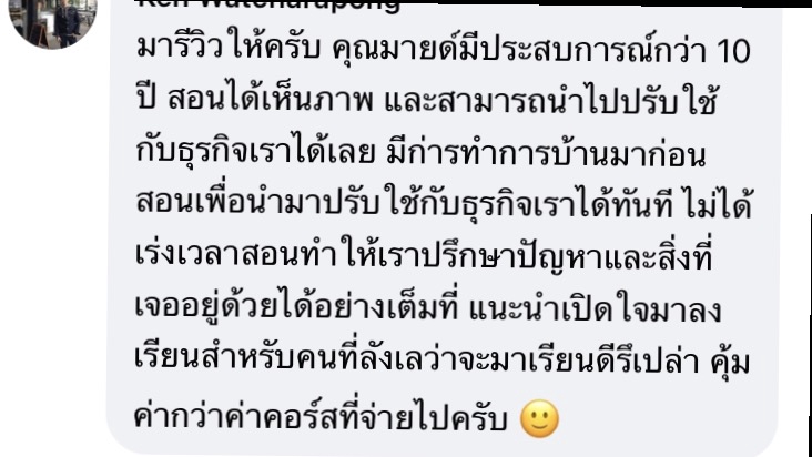 เนื้อหา เน้นตอบโจทย์... 🔥พ่อค้าแม่ค้า ที่อยากอัพสกิลตัวเองให้เขียนทำเงินเก่ง 🔥คนที่อยากเขียนเก่ง ไปรับงานเขียนต่อเองได้แบบมือโปร! (คุณจะมีกลุ่มลูกค้าเยอะมากๆ เพราะทุกท่านที่ขายออนไลน์ ย่อมจะอยากได้คอนเทนต์ดีๆ ) ❤️ สอนโดย ผู้มีประสบการณ์เขียนแคปชั่น นานกว่า 10 ปี ‼️ เขียนคอนเทนต์ให้แบรนด์น้อยใหญ่ หลายร้อยแบรนด์! รวมกว่า 3,000-4,000 งาน ✅ เขียนพาดหัวคลิป พาดหัวแคปชั่น ได้สะดุดตา พร้อมมัดใจลูกค้า ✅ เขียนสคริปพูดไลฟ์สด เตรียมพร้อมตัวเอง ได้ปังยิ่งขึ้น! ✅ เขียนแคปชั่น ขายของ ทุกช่องทาง ได้ทรงพลัง หวังผลได้มากกว่าเดิมเยอะ! ✅ รู้จิตวิทยาการเขียน ทำไมแค่เปลี่ยนคำพูดไม่กี่คำ ก็ส่งผลต่อการ “ตัดสินใจซื้อ” ของเขาได้ • แก้ปัญหา คิดแคปชั่นขายสินค้า หรือบริการของคุณไม่ออก นั่งตันเป็นวันๆ • โพสอะไรไปก็ยอดตกๆ แอดกินแต่เงิน • อยากโพสสร้างทีม หาตัวแทน แต่ไม่รู้จะใช้คำว่าอะไรให้น่าสนใจ • สอนวิธีคิด วิธีสร้างคอนเทนต์ง่ายๆ ด้วยตัวเอง ซึ่งความพิเศษของทริคนี้ก็คือ ไม่ว่าคุณจะขายสินค้า หรือ บริการใดๆ ก็ตาม ก็สามารถนำไปประยุกต์ใช้ได้ทั้งนั้น • นำไปใช้ได้ทุกที่ ทั้งเฟสบุ๊ค ig Line Tiktok ❤️เนื้อหา แถมฟรี!! พิเศษนอกเหนือจากในภาพนะคะ • แนะวิธีคิด ให้สามารถคิดแคปชั่นได้เอง ไม่ต้องคอยก็อบจากแบรนด์ จนการเข้าถึงลด! อีกต่อไป • มีสอนครบ! ตั้งแต่เรื่องการโพสไปจนถึงแนะนำการตอบ inbox ปิดการขาย ---------- ❤️ เราจะเน้นเจาะการคิดคอนเทนต์ ทำยังไง? ให้มีคนซื้อ อยากโอนให้เราง่ายๆ ! • sale content (เน้นปิดยอด ยิงแอท หาตัวแทน) • value content (เน้นแชร์ ดึงคนให้ติดตาม ติดดาว) ค่ะ --------- ❤️ การเรียนจะนัด 1 ครั้ง (เลือกได้เลยค่ะ ว่าสะดวกแบบ...) • พบหน้ากันเลย หรือ • เรียนออนไลน์ ผ่าน vdo call ก็ได้ค่ะ (* นัดวันเวลาเรียนกันสดๆ นะคะ ไม่ใช่คลิปที่อัดไว้ เลือกวันเวลาที่สะดวกได้เลย* ) 👉การเรียนใช้เวลา # ประมาณ 3 ชั่วโมง # อาจนานหรือเร็วกว่านี้เล็กน้อย ขึ้นกับคำถามของทางผู้เรียนเป็นสำคัญ เพื่อเรียนเทคนิคทั้งหมดที่โดยส่วนตัวแล้วมายใช้เองจริงๆ ให้ทั้งหมด (มีเอกสารพิเศษลับ! ให้ 1 ชุดค่ะ) เพราะมายจะสอนและเน้นเจาะไปที่สินค้าหรือบริการที่ผู้เรียนอยากนำไปใช้ให้โดยตรง! 😍**เพื่อจะได้เห็นภาพชัดเจน พร้อมนำไปใช้ได้ทันที หลังเรียน ส่งงานมาให้ช่วยดู ให้ตรวจ ขอคำแนะนำ ขอคำปรึกษาได้เลยนะคะ เพราะการเขียน ต้องอาศัยการฝึกฝนเองร่วมด้วยเพื่อผลลัพธ์ที่ดีที่สุด . 👉สำหรับสถานที่ : ท่านที่นัดพบกัน จะนัดเรียนกันที่คอฟฟี่ช็อปหรือสตาร์บัค • โซน บางใหญ่ เวสเกตราชพฤกษ์, รัตนาธิเบศ ปิ่นเกล้า หรือใกล้เคียง • หรือ กรุงเทพฯ ตามแนว MRT ได้ค