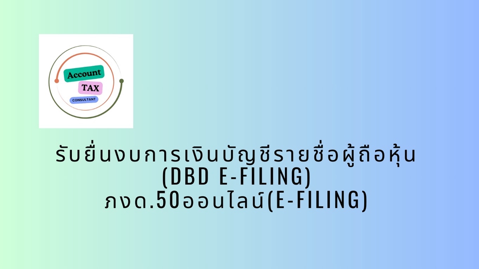 รับยื่นงบการเงินบัญชีรายชื่อผู้ถือหุ้นออนไลน์(DBD e-Filing)และภงด.50ออนไลน์(E-FILING )