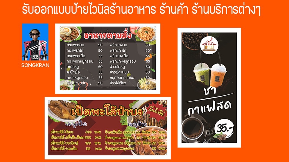 รับออกแบบป้ายไวนิล ร้านอาหาร ร้านค้า ร้านบริการต่างๆ