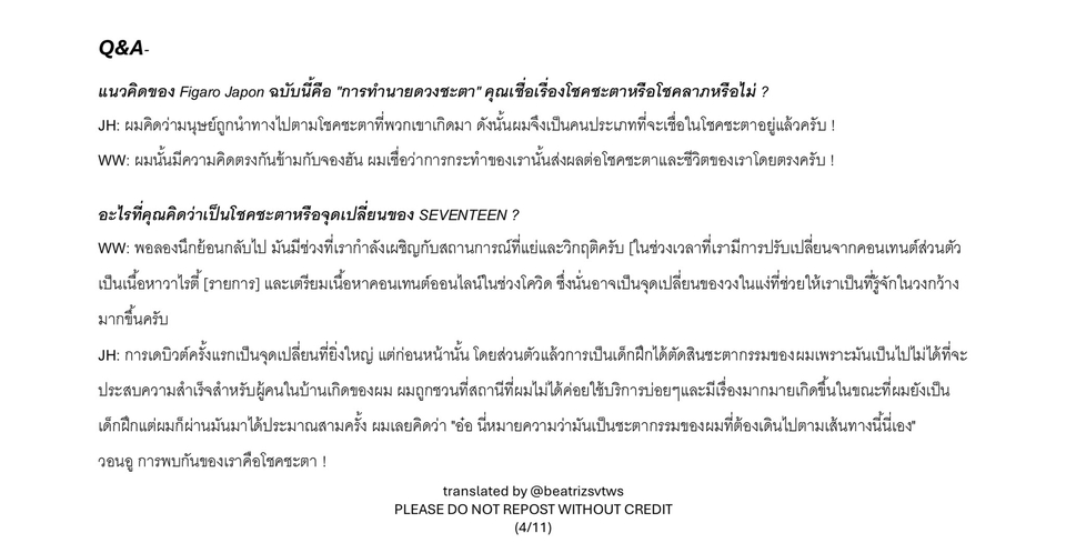 แปลบทสัมภาษณ์นิตยสาร MADAME FIGARO จองฮัน วอนอู ไอดอลวงเซเว่นทีน