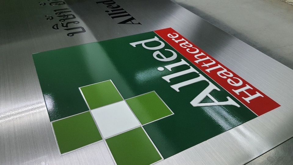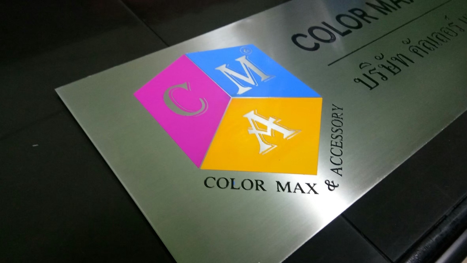รับผลิตป้ายบริษัทด้วยสแตนเลสโดยการกัดกรด ลงสี