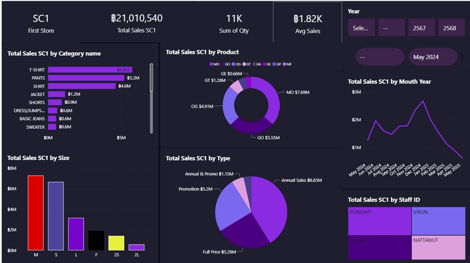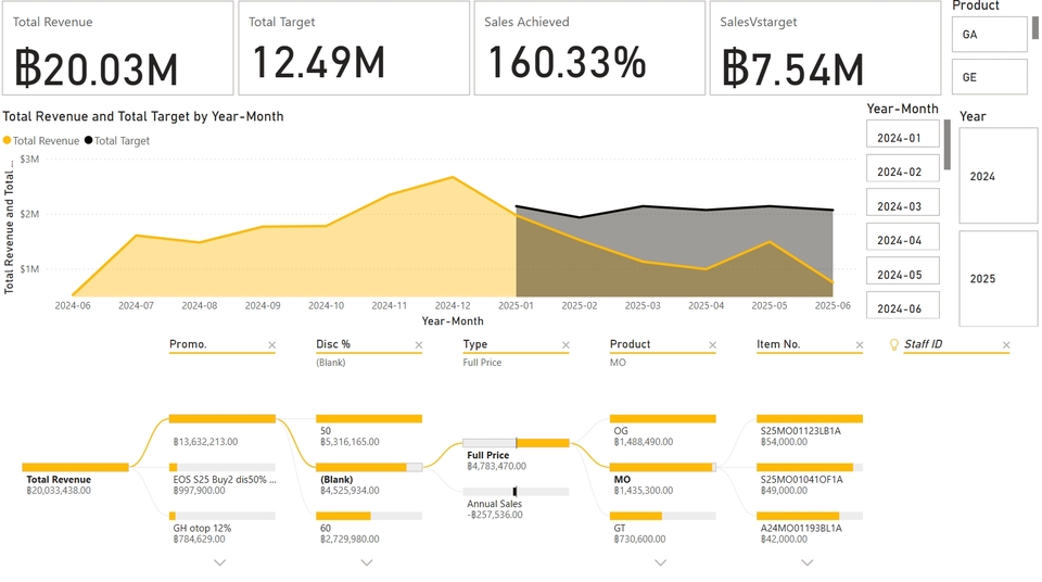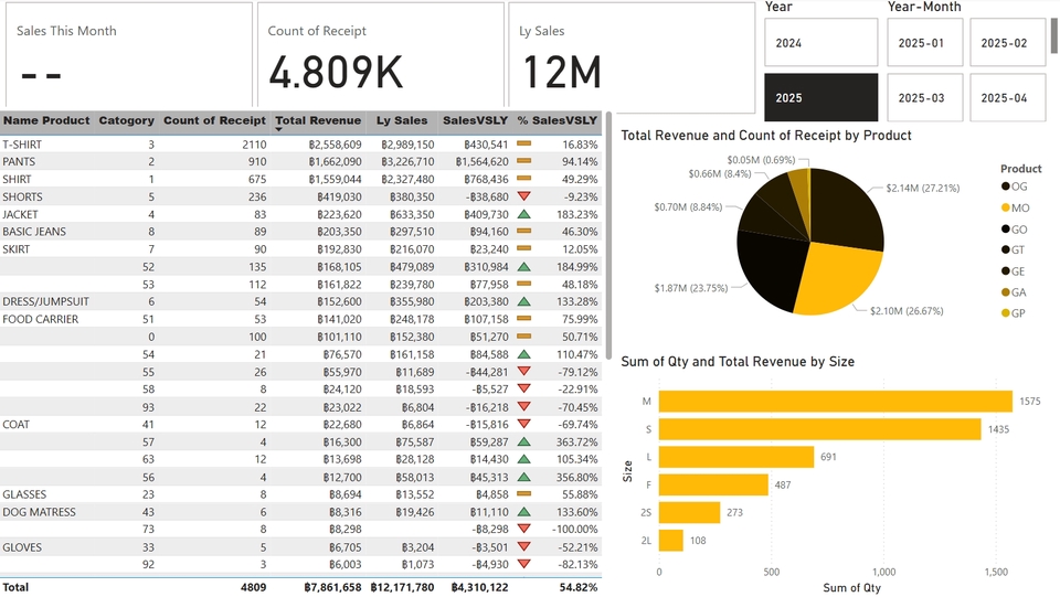 รับทำ Dashboard / วิเคราะห์ยอดขาย–สต๊อก / KPI / Template (Power BI & Excel)”