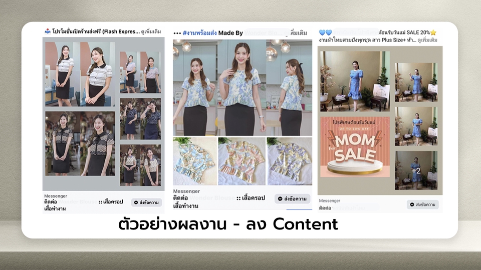 ถ่ายภาพสินค้าลงเพจ เขียนคอนเทนน์ออนไลน์ ออกแบบสื่อโฆษณาออนไลน์ มีประสบการณ์การดูแลเพจมากกว่า 5 ปี จำนวนเพจที่ดูแล ร้านขายเสื้อผ้าออนไลน์ เพจการศึกษาขายคอร์สออนไลน์ วางแผนงาน คิด Content / ตั้งเวลาโพสต์ / ตอบแชทลูกค้า / ทำ Ad โฆษณา