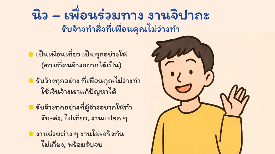 รับจ้างช่วยงานจิปาถะ | เป็นเพื่อนเที่ยว งานแปลก งานด่วน ได้หมด