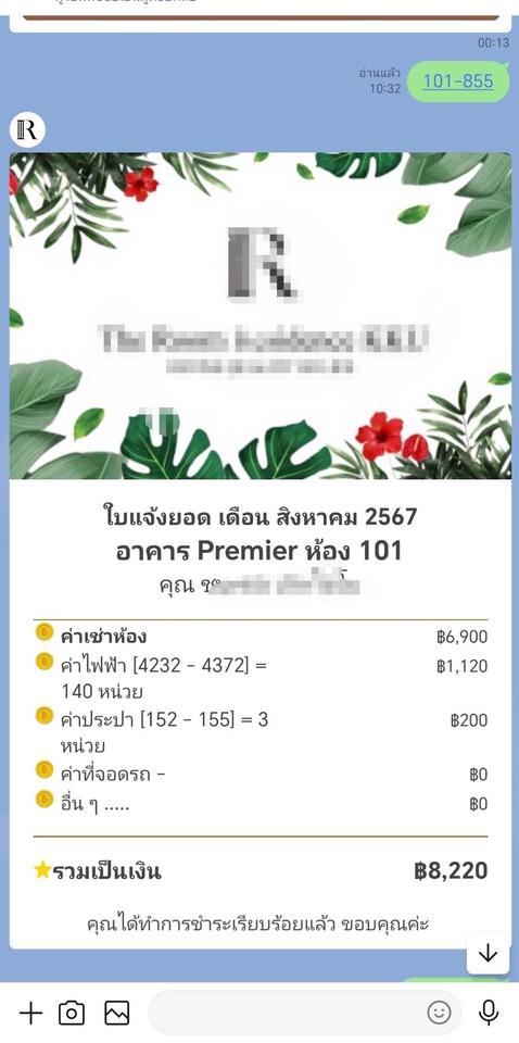 ระบบนี้ออกแบบมาเพื่อช่วยให้ผู้ดูแลห้องพักหรือผู้ประกอบการอสังหาริมทรัพย์สามารถจัดการกับการแจ้งเตือนค่าใช้จ่ายรายเดือนให้กับลูกค้าได้อย่างสะดวกและมีประสิทธิภาพมากขึ้น โดยข้อมูลรายละเอียดค่าเช่าและค่าใช้จ่ายอื่นๆ ของแต่ละเดือนจะถูกส่งไปยังลูกค้าผ่าน LINE อัตโนมัติ พร้อมระบบสอบถามข้อมูลที่ทำให้ลูกค้าสามารถตรวจสอบค่าใช้จ่ายและชำระเงินได้อย่างง่ายดายด้วยการกดเพียงไม่กี่คลิก จุดเด่นของระบบ: 1. การแจ้งเตือนอัตโนมัติ – ระบบส่งข้อมูลค่าใช้จ่ายรายเดือนให้กับลูกค้าผ่าน LINE โดยไม่ต้องทำงานด้วยมือ ลดความผิดพลาดและลืมแจ้งเตือน. 2. ระบบชำระเงินออนไลน์ – ลูกค้าสามารถชำระค่าเช่าผ่านระบบได้ทันทีหลังจากได้รับข้อความ ทำให้การจัดการเรื่องการเงินรวดเร็วและมีประสิทธิภาพมากขึ้น. 3. ตอบสนองรวดเร็ว – เมื่อลูกค้าสอบถามค่าเช่า ระบบสามารถตอบกลับพร้อมรายละเอียดค่าใช้จ่ายได้ทันทีผ่าน LINE. ปรับแต่งได้ง่าย – ผู้ใช้งานสามารถอัพเดทข้อมูลได้จาก Google Sheets และระบบจะปรับให้ข้อมูลใหม่ทำงานในทันที. 4. ประหยัดเวลาและทรัพยากร – ลดขั้นตอนที่ต้องทำด้วยตนเอง ทำให้มีเวลาไปโฟกัสกับงานอื่นๆ มากขึ้น. เหมาะสำหรับผู้ประกอบการที่ต้องการระบบจัดการค่าเช่าและค่าใช้จ่ายที่ง่ายและไม่ยุ่งยากในชีวิตประจำวัน. ขั้นตอนการทำงาน 1. สร้างข้อมูลลูกค้าและห้องพักใน Google Sheets ผู้ใช้งานกรอกข้อมูลลูกค้า เช่น ชื่อ เบอร์โทร หรือ LINE ID และรายละเอียดค่าใช้จ่ายของห้องพักในตาราง Google Sheets ซึ่งจะเป็นฐานข้อมูลสำหรับการแจ้งเตือนอัตโนมัติ. 2. ตั้งค่ารายละเอียดค่าใช้จ่ายประจำเดือน ผู้ใช้งานสามารถอัพเดทรายละเอียดค่าใช้จ่ายประจำเดือน เช่น ค่าเช่า ค่าน้ำ ค่าไฟ หรือค่าใช้จ่ายอื่นๆ ลงใน Google Sheets เพื่อเตรียมข้อมูลสำหรับการส่งแจ้งเตือน. 3. เชื่อมต่อระบบกับ LINE API ระบบจะถูกตั้งค่าให้เชื่อมต่อกับ LINE API โดยใช้ข้อมูลจาก Google Sheets เพื่อส่งข้อความแจ้งเตือนและตอบสนองคำถามจากลูกค้าผ่านช่องทาง LINE. 4. ระบบตอบกลับอัตโนมัติเมื่อมีการสอบถามค่าเช่า หากลูกค้าต้องการตรวจสอบค่าเช่าหรือสอบถามรายละเอียดค่าใช้จ่าย ระบบจะสามารถตอบกลับข้อมูลเหล่านี้ได้ทันทีผ่าน LINE โดยอ้างอิงจากข้อมูลใน Google Sheets. 5. อัพเดทสถานะการชำระเงินในระบบ หลังจากลูกค้าชำระเงิน ระบบจะอัพเดทสถานะการชำระเงินใน Google Sheets โดยอัตโนมัติ ทำให้ผู้ดูแลสามารถติดตามได้ว่ายังมีลูกค้าท่านใดที่ค้างชำระบ้าง. 6. ตรวจสอบและสรุปยอดค่าใช้จ่าย ผู้ใช้งานสามารถตรวจสอบข้อมูลการชำระเงินและสรุปยอดรายรับจากค่าเช่าทั้งหมดได้จาก Google Sheets ซึ่งจะมีการอัพเดทข้อมู
