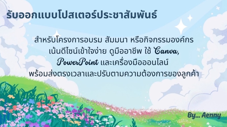 รับออกแบบโปสเตอร์ประชาสัมพันธ์สำหรับโครงการอบรม สัมมนา หรือกิจกรรมองค์กร เน้นดีไซน์เข้าใจง่าย ดูมืออาชีพ ใช้ Canva, PowerPoint และเครื่องมือออนไลน์ พร้อมส่งตรงเวลาและปรับตามความต้องการของลูกค้า – ยินดีให้บริการค่ะ 😊