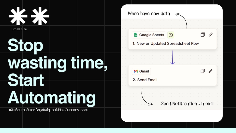 AutoFlow – บริการตั้งค่าระบบอัตโนมัติ เชื่อมต่อทุกแพลตฟอร์มให้ทำงานแทนคุณ 💼 ลดงานซ้ำซ้อน เพิ่มประสิทธิภาพธุรกิจของคุณ! AutoFlow เป็นบริการที่ช่วยตั้งค่าและเชื่อมต่อระบบอัตโนมัติให้ธุรกิจของคุณทำงานได้ลื่นไหล ไม่ว่าจะเป็น Google Sheets, Facebook, LINE, Email, หรือแพลตฟอร์มอื่น ๆ โดยใช้เครื่องมือAI เป็นตัวช่วย เพื่อให้ทุกอย่างทำงานอัตโนมัติ ประหยัดเวลา และลดข้อผิดพลาด 🛠 ตัวอย่างบริการที่เรารับทำ: ✅ แจ้งเตือนอัตโนมัติ – เมื่อมีข้อมูลใหม่ใน Google Sheets ส่งแจ้งเตือนไปยัง LINE หรือ Email ✅ โพสต์ Facebook อัตโนมัติ – ดึงข้อมูลจาก Google Sheets ไปยัง Facebook Page ของคุณ ✅ ออกใบแจ้งหนี้อัตโนมัติ – เมื่อมีออเดอร์ใหม่ สร้าง Invoice และส่งให้ลูกค้าทันที ✅ เชื่อมต่อระบบ CRM – บันทึกข้อมูลลูกค้าไปยัง Google Sheets อัตโนมัติ ✅ ส่งอีเมลตอบกลับอัตโนมัติ – เมื่อลูกค้ากรอกแบบฟอร์มหรือสั่งซื้อสินค้า 🎯 เหมาะสำหรับใคร? 🔹 เจ้าของธุรกิจที่ต้องการลดภาระงานซ้ำซ้อน 🔹 นักการตลาดที่ต้องการโพสต์หรือแจ้งเตือนอัตโนมัติ 🔹 ร้านค้าออนไลน์ที่ต้องการจัดการออเดอร์ง่ายขึ้น 🔹 ผู้ที่ต้องการทำระบบแจ้งเตือนผ่าน LINE, Email หรือ Messenger ขั้นตอนการทำงาน 1. ลูกค้าแจ้งความต้องการ 2. วิเคราะห์และออกแบบ Solutionที่เหมาะสม 3. ดำเนินการตั้งค่าและพัฒนาระบบ 4. ทดสอบและส่งมอบระบบ 5. ส่งมอบงาน+คู่มื่อการใช้งานเบื้องต้น