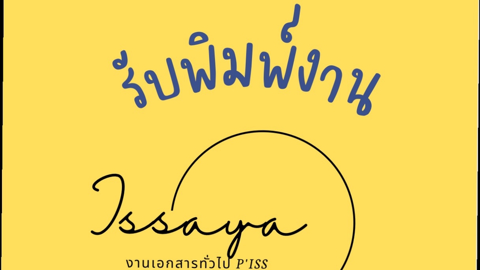 รับพิมพ์งานทั่วไปทั้งภาษาไทยและภาษาอังกฤษ คีย์ข้อมูล แปลงไฟล์ ตรวจอักษร จัดหน้ารูปเล่มรายงาน ทำสื่อการสอน พรีเซนเทชั่น รับทำรายงาน โครงงาน เขียนบทความ ราคาถูก ประสบการณ์ทำงานในโรงเรียนรัฐบาลสองปี ขั้นตอนการทำงาน 1. คุยรายละเอียดงาน ความต้องการ 2. ตรวจสอบเพิ่มเติม 3. แก้ไข 4. รับงาน