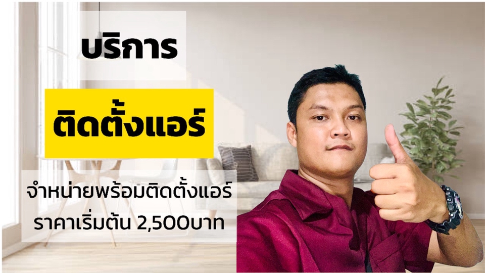 บริการจำหน่ายพร้อมติดตั้งแอร์ ทุกขนาดและทุกยี่ห้อ อุปกรณ์ที่แถมให้ 1.ท่อน้ำยาแอร์ 4 เมตร 2.สายไฟฟ้า 10 เมตร 3.ชุดเบรคเกอร์แอร์ 1 ชุด 4.ขาแขวนคอยล์ร้อน 1 ชุด 5.ยางรองคอยล์ร้อน 1 ชุด 6.ท่อน้ำทิ้ง 10 เมตร ขั้นตอนการทำงาน 1.เลือกบริการผ่าน Fastwork 2.ทักแชทเพื่อสอบถาม รายละเอียดราคาและวันเวลาว่าง 3.ทำใบเสนอราคาส่งให้ลูกค้า 3.กดซื้อบริการ ชำระเงิน 4.แอดมินติดต่อกลับเพื่อคอมเฟิร์มงาน 5.ทีมช่างเข้าให้บริการ ***พื้นที่ที่ให้บริการ จังหวัดนราธิวาส (เขต อ.เมือง อ.ยี่งอ อ.ระแงะ อ.บาเจาะ อ.ตากใบ)