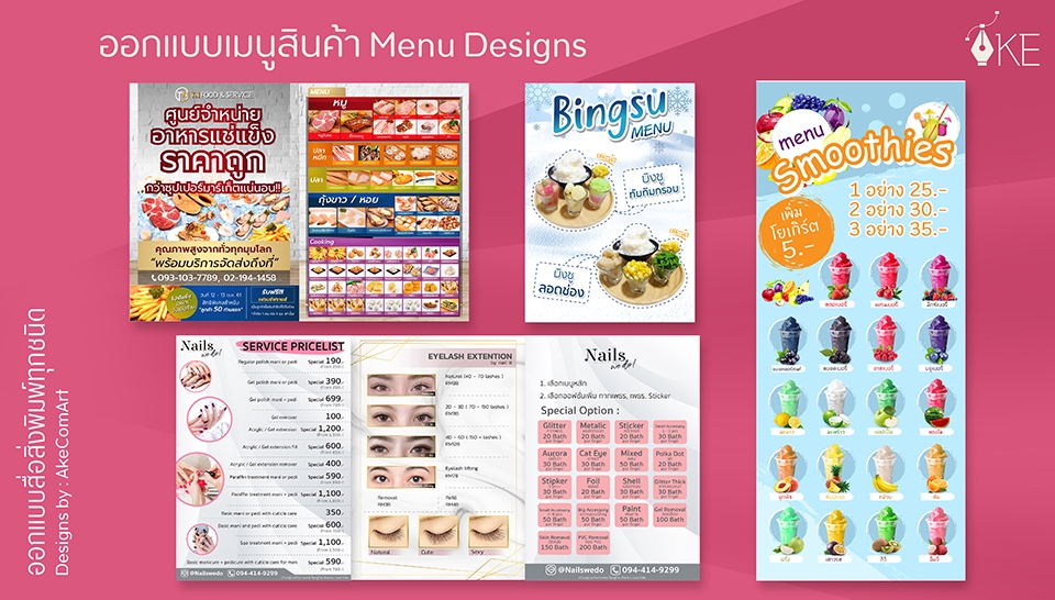 ออกแบบสื่อสิ่งพิมพ์ทุกชนิด นามบัตร โบรชัวร์ เมนูอาหาร