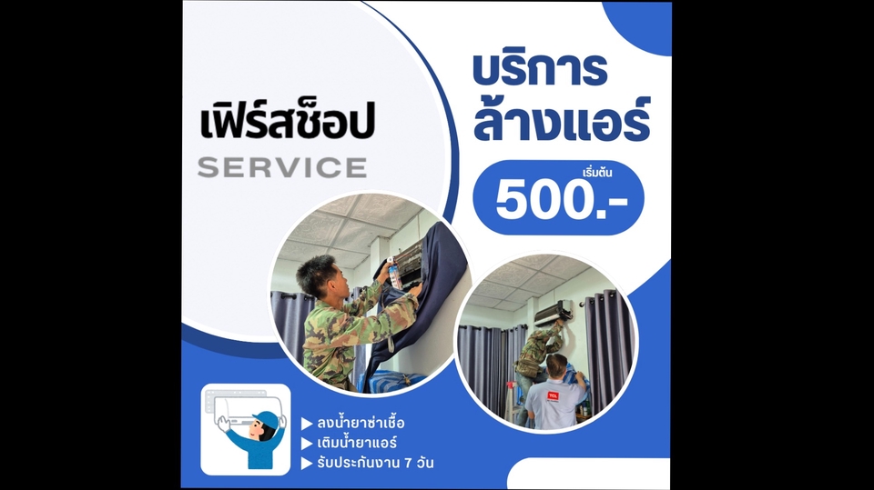อยากให้ห้องเย็นสบาย ลมแรงเหมือนใหม่ ต้องหมั่นล้างแอร์สม่ำเสมอ บริการล้างแอร์สะอาดหมดจด ใส่ใจทุกขั้นตอน กำจัดฝุ่นและเชื้อรา เพื่อสุขภาพที่ดีของทุกคนในบ้าน รายละเอียดบริการ: - ล้างแอร์บ้าน แอร์ผนัง - ตรวจสอบน้ำยาแอร์และระบบไฟฟ้า - แก้ปัญหาแอร์มีกลิ่นอับ ขั้นตอน: 1. แจ้งสถานที่และประเภทแอร์ 2. นัดหมายเวลาที่สะดวก 3. ช่างเข้าบริการล้างทำความสะอาด 4. ตรวจเช็คความเรียบร้อยก่อนจบงาน พื้นที่ให้บริการ: พิบูลมังสาหาร, เมืองอุบลราชธานี, วารินชำราบ และอำเภอใกล้เคียงในอุบลฯ