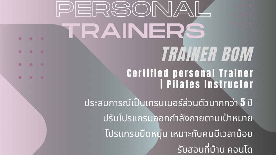 เทรนเนอร์ส่วนตัว & รับสอนพิลาทิสนอกสถานที่ | ประสบการณ์กว่า 5 ปี | ดูแลฟอร์มอย่างมืออาชีพ ครูบอม ✨ มีประสบการณ์เป็นเทรนเนอร์ส่วนตัวมามากกว่า 5 ปี และปัจจุบันเป็น Certified Pilates Instructor -ยินดีให้คำปรึกษาฟรี -เชี่ยวชาญด้านการออกแบบโปรแกรมออกกำลังกายเฉพาะบุคคล - โฟกัสการเคลื่อนไหวที่ปลอดภัย - เน้นการเทรนอย่างเข้าใจ - เหมาะสำหรับผู้เริ่มต้น ผู้ที่มีอาการเจ็บเรื้อรัง หรืออยากฟื้นฟูร่างกาย