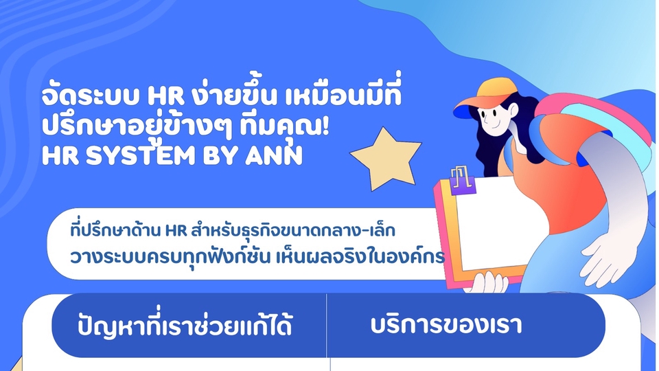 ดระบบ HR ง่ายขึ้น เหมือนมีที่ปรึกษาอยู่ข้าง ๆ ทีมคุณ! หลายธุรกิจ “เสียเวลา” ไปกับเรื่อง HR ที่ไม่ควรต้องวุ่นวาย 📎 เอกสารกระจัดกระจาย 📎 ระบบสรรหาไม่ชัดเจน 📎 คิดเงินเดือนผิด พนักงานไม่พอใจ 📎 ไม่มีระบบฐานข้อมูล ทำให้ทีมเดินช้า ถึงเวลาให้ HR SYSTEM by Ann ช่วย “ยกเครื่องระบบ HR” ของคุณให้ครบทุกฟังก์ชัน ✅ ✨ เราช่วยคุณตั้งแต่ Setup ระบบ HR ครบวงจร บริการสรรหาและสัมภาษณ์ บริการ Payroll และเอกสาร HR แบบฟอร์ม HR พร้อมใช้ Coaching & Consult รายเดือน 📍เหมาะกับธุรกิจขนาดเล็ก–กลาง (10–200 คน) ที่อยากให้ระบบ HR เดินได้จริง เห็นผลชัดเจนในองค์กร