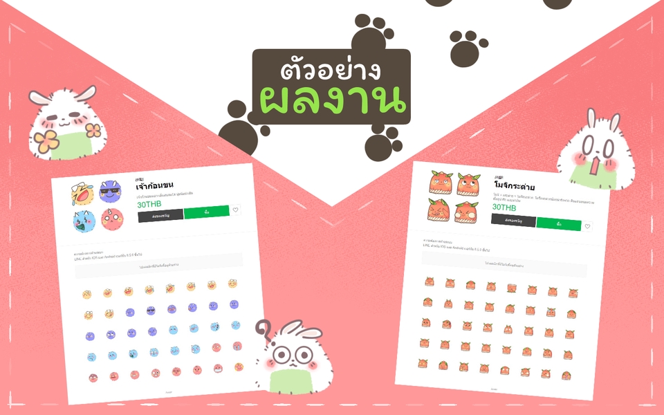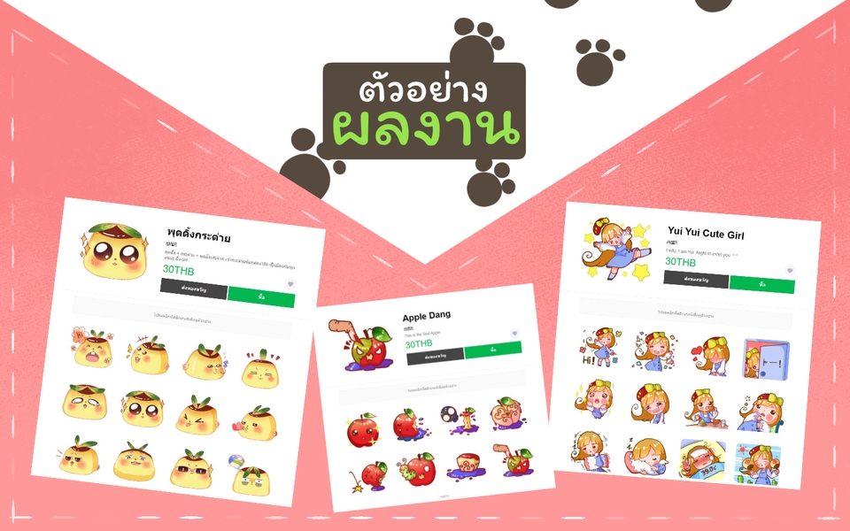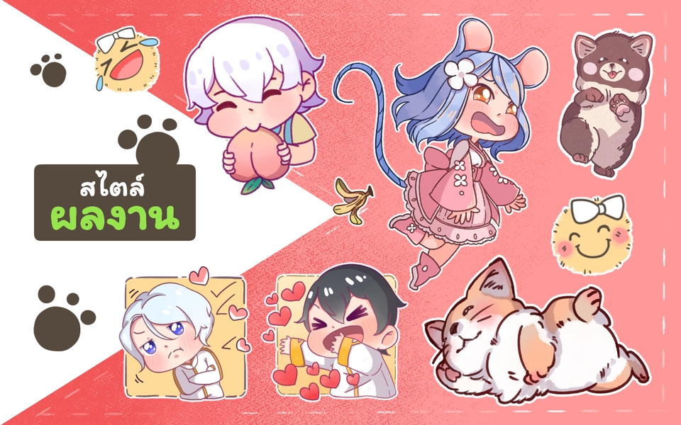 สวัสดีค่ะคุณลูกค้า ยินดีต้อนรับเข้าสู่ร้านของเราค่ะ รับออกแบบ สติกเกอร์ไลน์เป็นตัวการ์ตูนน่ารัก ๆ ตามความต้องการของคุณลูกค้า สำหรับท่านที่ต้องการมีสติกเกอร์ไลน์เป็นของตัวเองค่ะ ซึ่งหากคุณลูกค้ามีตัวอย่าง หรือแนวงาน หรือตัวละครที่ต้องการ คุณลูกค้าสามารถแนบตัวอย่างมา เพื่อประกอบ เพื่อสามารถให้ทางเราเห็นภาพตรงกันได้ค่ะ หากคุณลูกค้ามีข้อสงสัย หรือว่าสนใจสามารถติดต่อสอบถามกันเข้ามาก่อนก็ได้นะคะ **** ไม่มีไฟล์ AI ให้นะคะ เพราะไม่ได้ใช้โปรแกรมวาดตระกูล illustrator ค่ะ * ไม่รับวาดสติกเกอร์จากตัวละครที่มีลิขสิทธิ์แล้วนะคะ * ไม่รับลอกลายเส้นของผู้อื่นนะคะ * ไม่รับวาดสติกเกอร์แนวกึ่งเรียลนะคะ * ตอนนี้ยังไม่รับวาดภาพสติกเกอร์ดุ๊กดิ๊ก(เคลื่อนไหวได้)ค่ะ ขั้นตอนการทำงาน 1. คุยรายละเอียดงาน ความต้องการของลูกค้า และขอบเขตการทำงาน 2. ออกแบบตัวละคร และท่าทาง วาดภาพร่างสำหรับสติกเกอร์ (ขั้นตอนนี้แก้ไขภาพร่างได้ 2 ครั้ง) 3. ตัดเส้นภาพ (เมื่อเริ่มขั้นตอนนี้ ภาพร่างจะไม่สามารถแก้ไขได้อีก) 4. ลงสีภาพ (ขั้นตอนนี้แก้ไขสีของภาพได้ 2 ครั้ง) 5. ใส่ตัวอักษร 6. ตรวจทานงาน แก้ไข พร้อมสำหรับการส่งงานขั้นสุดท้าย 7. แก้ไขภาพ (ในกรณีที่ภาพส่งไปยังไลน์ครีเอทเตอร์แล้วถูก Reject)