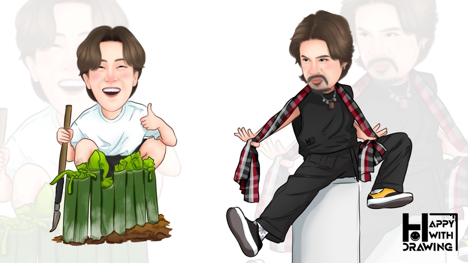 การ์ตูนหัวโต วาดเหมือนจริงแต่หัวโตขึ้น ส่งงานเป็นไฟล์ แนะนำเป็นรูปที่ไม่มีมือจับอยู่บริเวณหัว ภาพค่อนตัวจะวาดออกมาสวย