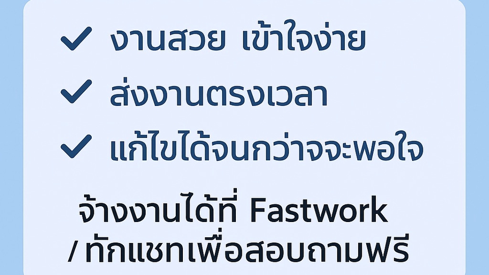 Fastwork เป็นตัวกลางถือเงินของคุณ เพื่อความปลอดภัย และฟรีแลนซ์จะได้รับเงิน หลังจากผู้ว่าจ้างจะกดอนุมัติงานแล้วเท่านั้น!