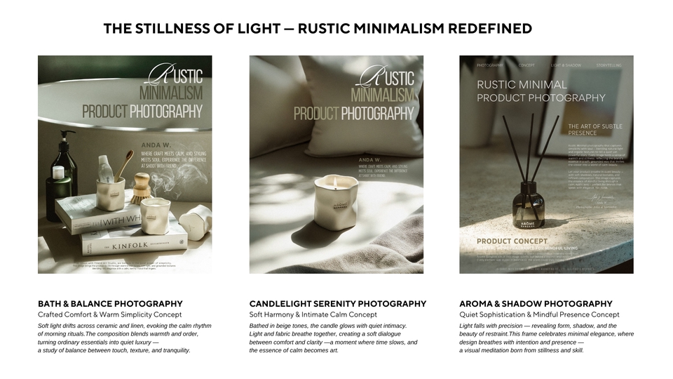 - • Full Art Direction & Prop Styling ควบคุมทิศทางภาพและการจัดพร็อพในทุกองค์ประกอบ