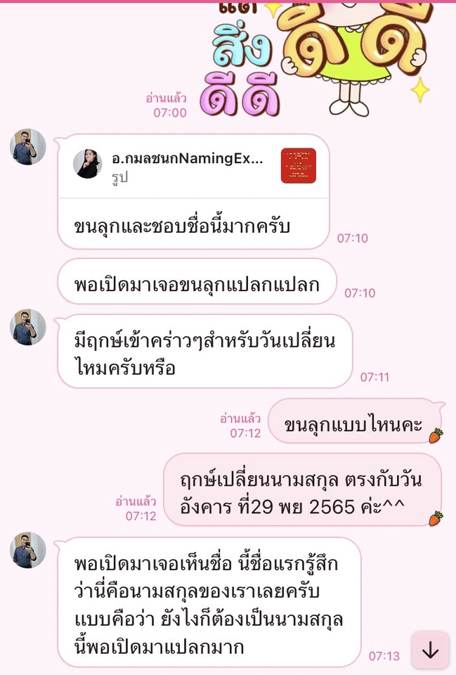 ฿1,000สิ่งที่คุณจะได้รับ - ชื่อมงคล2ชื่อ - พร้อมคำอ่านที่ถูกต้อง - พร้อมความหมายมงคล - พร้อมตัวสะกดภาษาอังกฤษที่ถูกต้อง - พร้อมคาถาส่งเสริมด้าน การงาน เงิน ความรัก สุขภาพ
