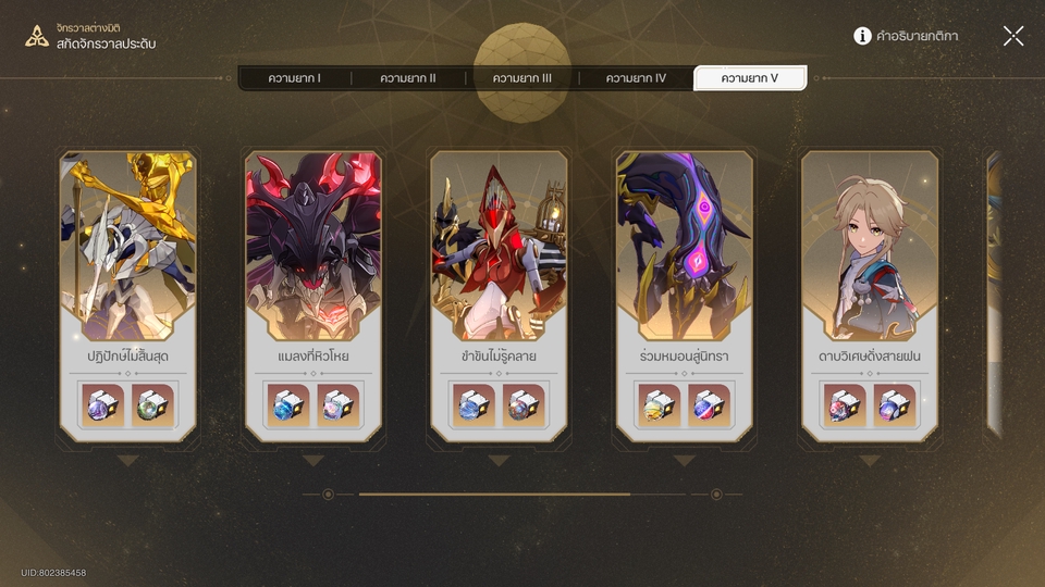 ฿8,000ใช้พลังงานสะสม 30 วันฟาร์มตามที่ระบุ วัสดุพัฒนาตัวละครเงินในเกมหรืออาร์ติแฟคสามารถระบุได้ว่าอยากให้เน้นหาอะไร (ส่งรายงานทุกๆวันหากต้องการ) +การเล่นกิจกรรมให้ +เล่นเนื้อเรื่องให้ตามแพทช์