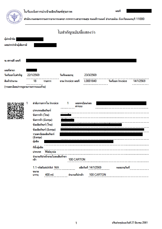 รับยื่น LPI - LICENSE PER INVOICE อย.
