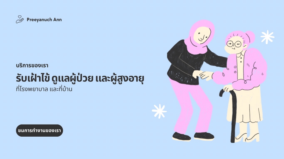 รับจ้างพาไปหาหมอ เฝ้าไข้ ดูแลผู้ป่วย ผู้สูงอายุ พาไปทำธุระ เที่ยว ทำบุญ และอื่นๆ
