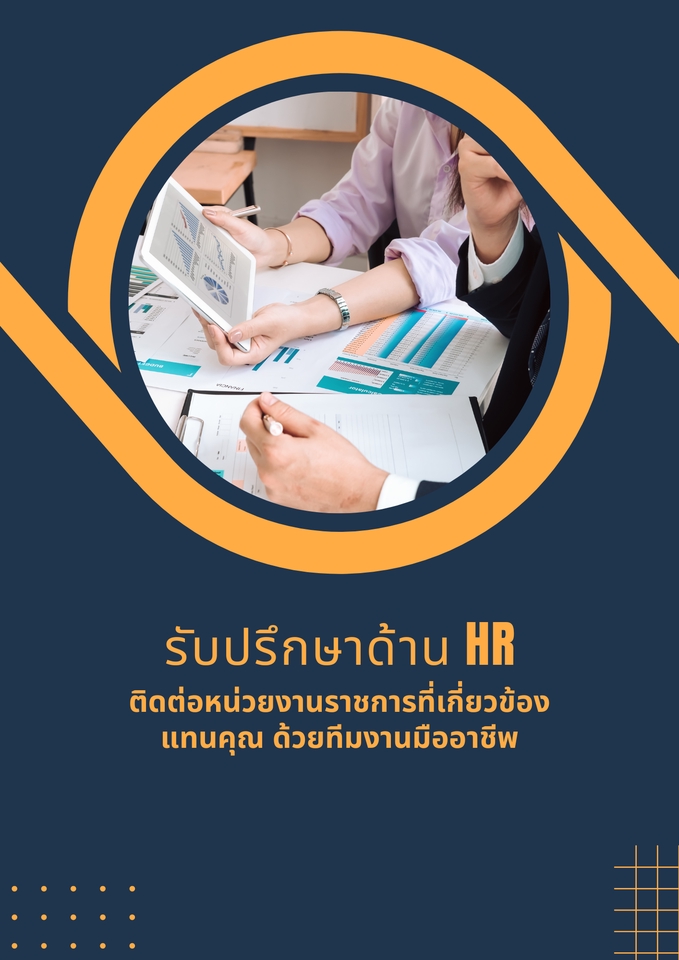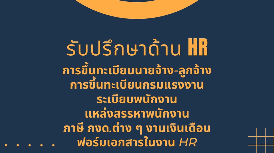 การขึ้นทะเบียนนายจ้าง-ลูกจ้าง การขึ้นทะเบียนกรมแรงงาน ระเบียบพนักงาน แหล่งสรรหาพนักงาน ภาษี ภงด.ต่าง ๆ งานเงินเดือน ฟอร์มเอกสารในงาน HR ติดต่อหน่วยงานราชการที่เกี่ยวข้อง ขั้นตอนการทำงาน 1. แจ้งรายละเอียดความต้องการของลูกค้า 2. แจ้งระยะเวลาการทำงาน 3. แจ้งราคาของงานที่เหมาะสม