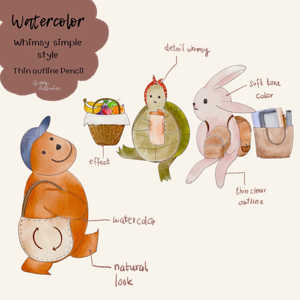 สวัสดีค่ะ ชื่อแอนนะคะ หรือ Annyillustration วาดภาพดิจิตอลโดยใช้โปรแกรมวาดภาพ procreate สไตล์สีน้ำ ดินสอสี whimsical hand drawn style ภาพประกอบ elements png หรือภาพประกอบสำหรับหนังสือเด็ก หรือ for education สามารถทักเข้ามาคุยคอนเซปต์งานได้ค่ะ ยินดีทำให้สุดฝีมือค่า