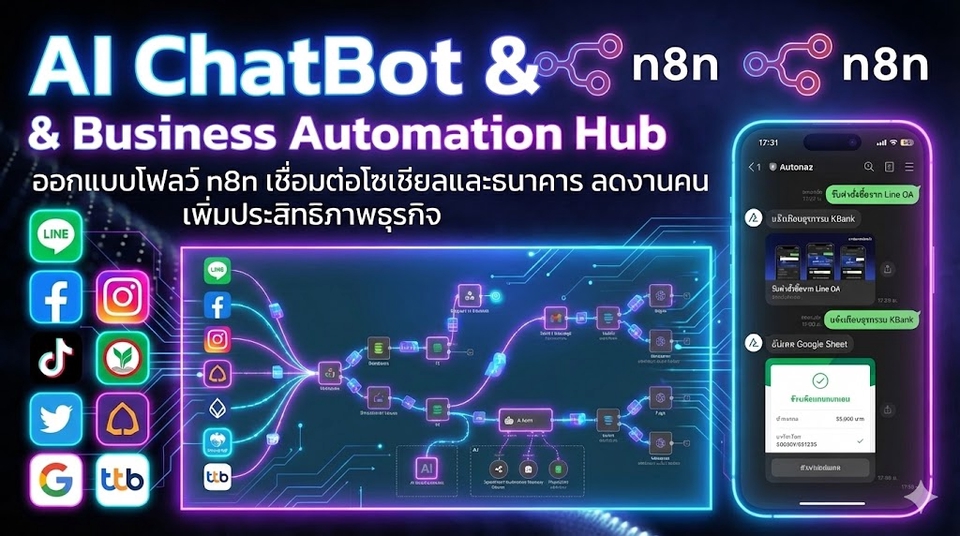 การทำงานยุคใหม่ต้องอาศัยระบบอัตโนมัติที่มีความเสถียร รวดเร็ว และลดการทำงานซ้ำซ้อนให้มากที่สุด เพื่อให้ธุรกิจสามารถเติบโตได้โดยไม่ต้องเพิ่มบุคลากรจำนวนมาก บริการของฉันคือการ “ออกแบบ พัฒนา และสร้างระบบ Workflow Automation ด้วย n8n แบบครบวงจร” สำหรับธุรกิจทุกประเภท ทั้งร้านค้าออนไลน์ บริษัท SME ระบบ CRM ระบบดูแลลูกค้า ระบบแจ้งเตือนอัตโนมัติ ระบบเชื่อมต่อ API ภายนอก รวมถึงระบบเชื่อมต่อ LINE OA, Facebook, PromptPay, Google Sheet และฐานข้อมูลต่าง ๆ ฉันมีประสบการณ์จริงในการทำงานด้านระบบอัตโนมัติและการเขียนโปรแกรมระดับ Production ที่รองรับลูกค้าจำนวนมากในเวลาเดียวกัน โดยใช้เครื่องมือที่ทันสมัย เช่น n8n, Docker, API Integration, Webhook, Qdrant, Valkey, Redis, รวมถึงระบบ Cloud เช่น DigitalOcean ระบบนี้สามารถช่วยลดต้นทุน ลดเวลา และเพิ่มประสิทธิภาพของทีมอย่างมาก เหมาะสำหรับธุรกิจที่ต้องการอัปเกรดการทำงานให้เข้าสู่ยุค Automation แบบเต็มตัว ■ สิ่งที่บริการนี้ครอบคลุม ฉันสามารถออกแบบและพัฒนาระบบในรูปแบบ Custom ตามความต้องการ เช่น • ระบบตอบแชทลูกค้าอัตโนมัติผ่าน LINE OA หรือ Facebook • ระบบแจ้งเตือนคำสั่งซื้อ–การโอนเงิน–อัปเดตงานอัตโนมัติ • ระบบดึงข้อมูลจาก API ภายนอก เช่น ธนาคาร, Payment Gateway, บริการ Cloud ต่าง ๆ • ระบบเก็บข้อมูลลูกค้า ลงฐานข้อมูล เช่น PostgreSQL, Supabase, Google Sheets • ระบบกระจายงาน/กระจายข้อความอัตโนมัติ รองรับหลาย Hosting และ Load Balancer • Workflow สำหรับงานฝั่งธุรกิจ เช่น บริการลูกค้า การจัดการออเดอร์ การแจ้งเตือนทีม • ระบบสร้าง Bot หรือ AI Assistant ที่สามารถวิเคราะห์และตอบกลับแบบ Smart • ระบบ Automation เชื่อมหลายแพลตฟอร์มเข้าด้วยกัน เช่น LINE > Google Sheet > ระบบหลังบ้าน • ระบบตรวจสอบสลิปอัตโนมัติ (Slip Verification) • ระบบแจ้งซ้ำอัตโนมัติ เตือนทีมงานหากมีงานค้าง • ระบบเชื่อมกับ CRM หรือเครื่องมือของบริษัท ทุกระบบสามารถออกแบบให้ “ทำงานได้จริง” แบบเสถียร รองรับปริมาณงานสูง และทำงานต่อเนื่อง 24 ชั่วโมง ไม่จำเป็นต้องดูแลมาก ■ จุดเด่นของบริการนี้ • ได้ระบบจริงพร้อมใช้งาน ไม่ใช่แค่สอน • ดูแลทั้งฝั่ง Workflow, Logic, API, ความปลอดภัย และการ Deploy • ออกแบบตามโจทย์ธุรกิจ ไม่ใช่ Workflow สำเร็จรูป • ทำงานแบบมืออาชีพ เป็นกันเอง เข้าใจธุรกิจ • ระบบรองรับผู้ใช้งานจำนวนมาก (High Concurrency) • ออกแบบโครงสร้าง Workflow ให้แก้ไขง่ายในอนาคต • เชื่อมได้ทุกระบบ ถ้า API มี ฉันเชื่อมให้ได้แน่นอน • ให้คำปรึกษาการใช้ Automation ในองค์กร • เผื่อขยายระบบล่วงหน้า ไม่ต้องทำใหม่เมื่อโต • แก้ปัญหาโค้ด การเชื่อมระบบ หรือบัคน8น ได้ทุกรูปแบบ ■ เหมาะสำหรับใคร • ผู้ที่ต้องการระบบอัตโนมัติช่วยทุ่นแรง • ธุรกิจที่ต้องการ Workflow เชื่อมหลายระบบ • เจ้าของร้าน/บริษัทที่ต้องการลดเวลา