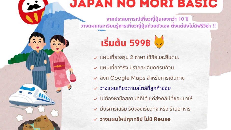 ฿599อยากไปญี่ปุ่น จะวางแผนยังไงดีนะ? เราจัดให้ตามใจ แค่บอกมาว่าอยากไปไหน ‼️ ไม่รวมการตอบปัญหาระหว่างเดินทาง สำหรับ 3-5 วันเดินทาง