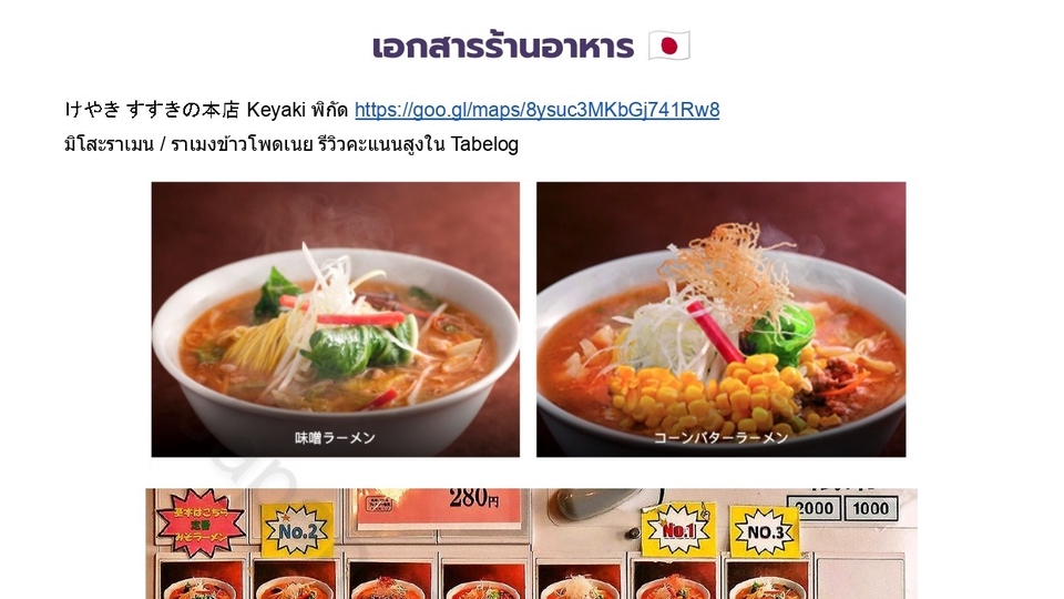 - • ข้อมูลร้านอาหารพร้อม Link Google maps / Tabelog link