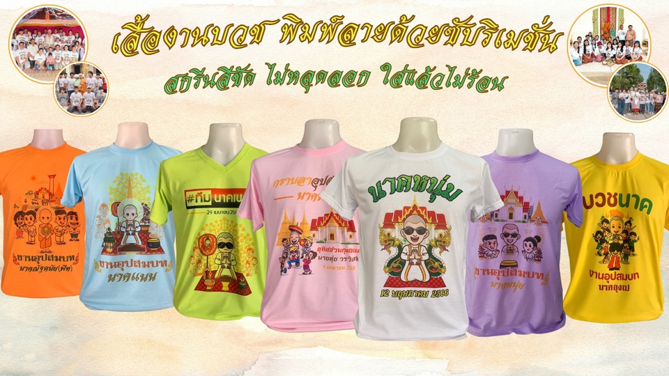 เสื้องานบวชพิมพ์ลายซับริเมชั่น สกรีนชัด ใส่แล้วไม่ร้อน
