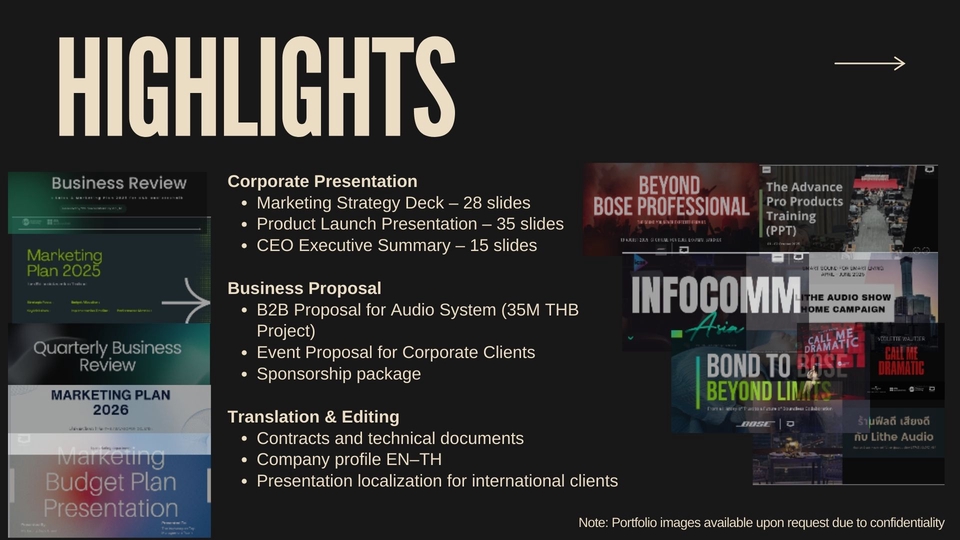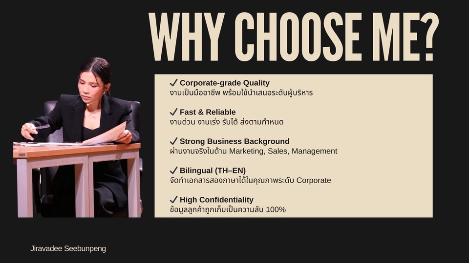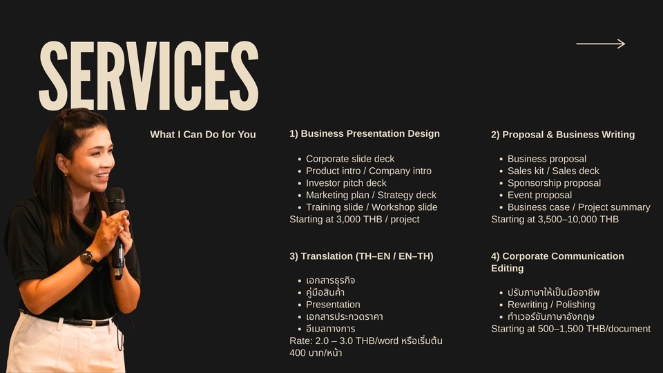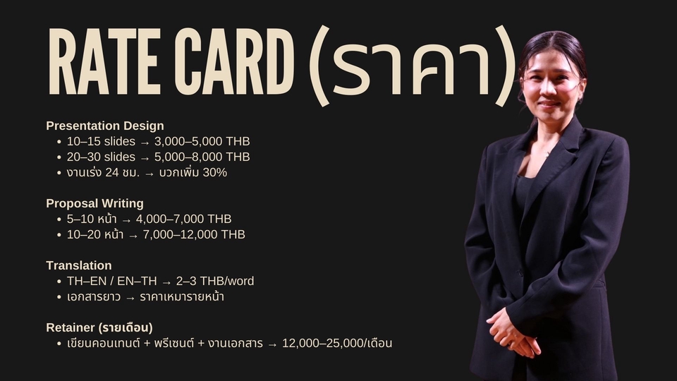 รับออกแบบ Business Presentation • Proposal Writing • Translation (TH–EN)