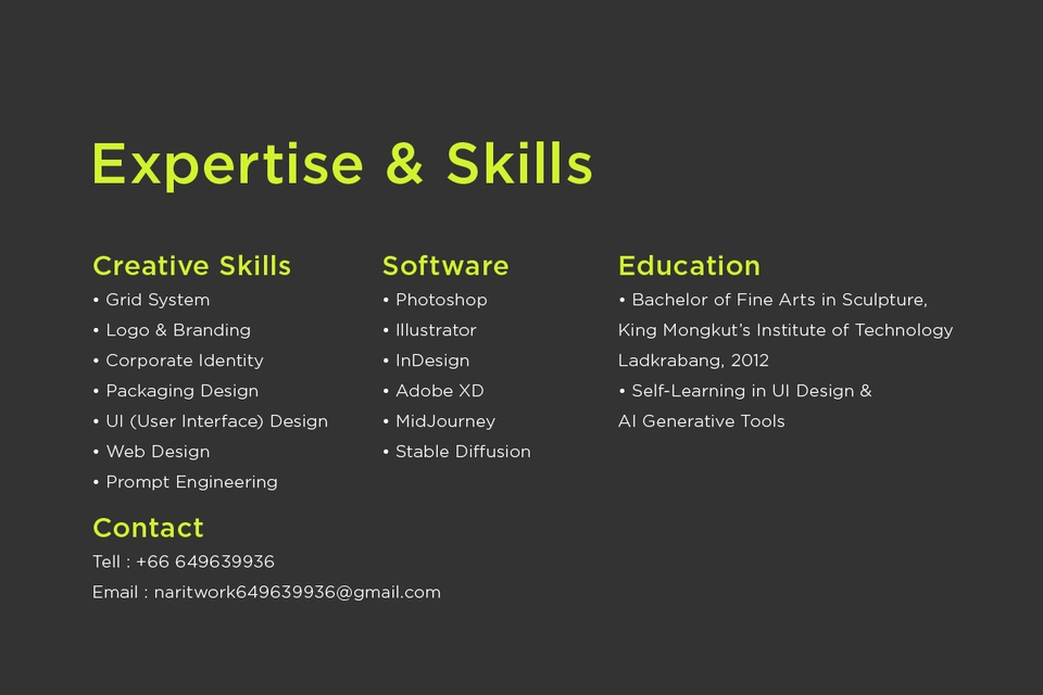 To leverage AI tools and creative skills to optimize workflows, reduce costs, and deliver impactful visual content. I aim to combine systematic thinking and innovative solutions to create value and drive efficiency for organizations.