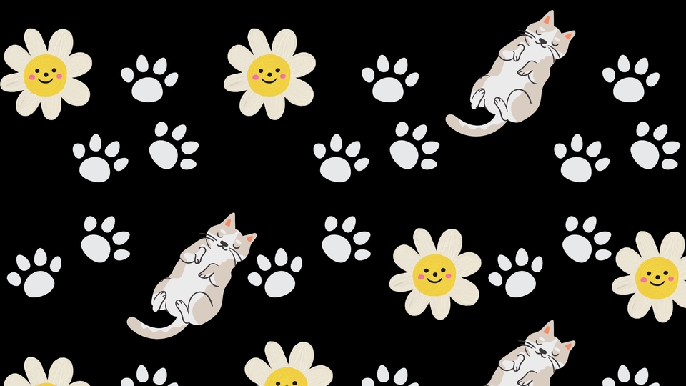 แมวเหมียวและดอกไม้