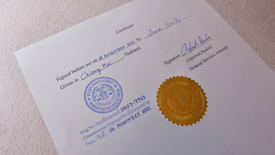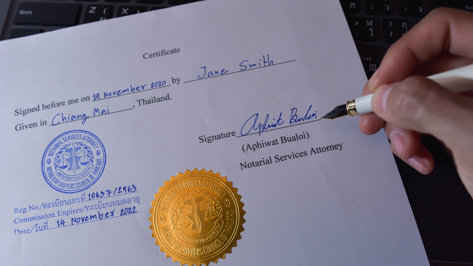 รับรองเอกสารโดยทนายโนตารี่ Notary Services Attorney in Chiang Mai